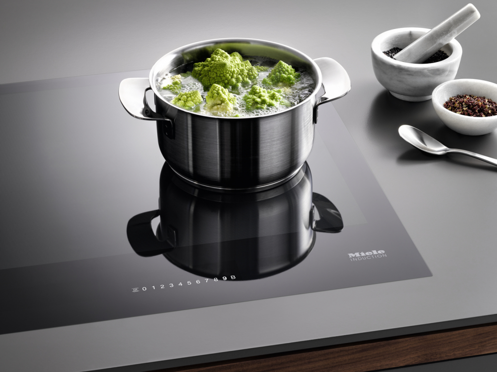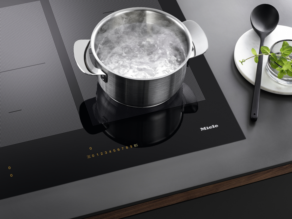 Для особливо швидкого кип'ятіння: Ексклюзивна функція TwinBooster від Miele дає змогу за потреби сконцентрувати потужність двох конфорок на одній. Або розподілити потужність індукції окремо - для ще більш гнучкого приготування.