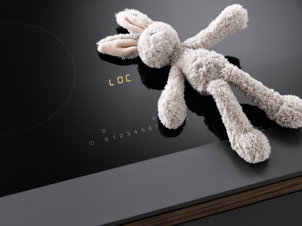 Найкращий захист у будь-якій ситуації: Блокування ввімкнення надійно захищає від випадкового або стороннього ввімкнення. Якщо варильна зона нагрівається на одному рівні потужності протягом незвично тривалого часу або якщо на ввімкненій варильній поверхні немає посуду, вона автоматично вимикається. Інший помічник - індикатор залишкового тепла: він нагадує, що не можна торкатися конфорки, поки вона ще гаряча.