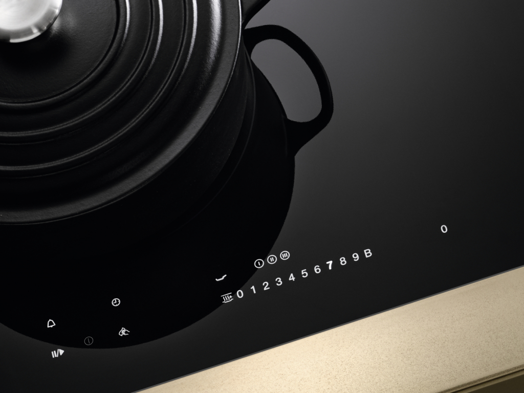 Завдяки інтелектуальній системі розпізнавання посуду енергія витрачається особливо ефективно. Панель керування видно тільки тоді, коли ви ставите каструлю або сковорідку, нагрів здійснюється безпосередньо під посудом. Якщо ви переміщуєте посуд, то налаштування також слідують за ним.