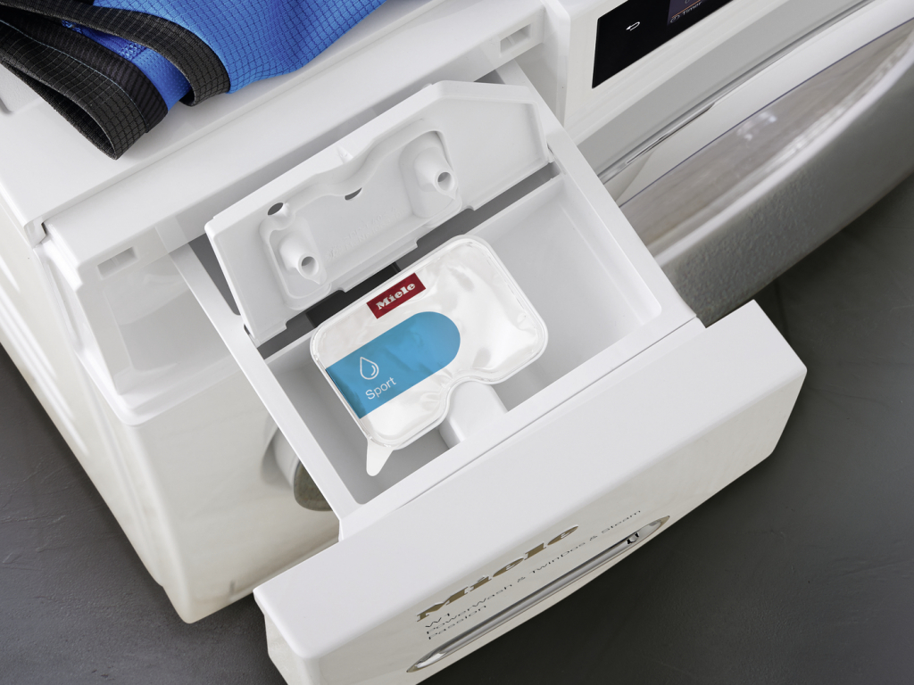 Предмети одягу, що потребують особливого догляду, можна зручно обробляти за допомогою порційних капсул Miele. Ви просто розміщуюте їх у відсік для кондиціонера, прилад розподіляє його вміст автоматично в ідеальний момент та необхідній кількості, під час процесу прання, без контакту миючого засобу зі шкірою. На Ваш вибір: 3 пом'якшувачі (Aqua, Nature, Cocoon) та 9 спеціальних миючих засобів (WoolCare, SilkCare, DownCare, UltraDark, Sport, Outdoor, ImpraProtect - просочення, CottonRepair - для відновлення тканин, а також Booster для складних забруднень).