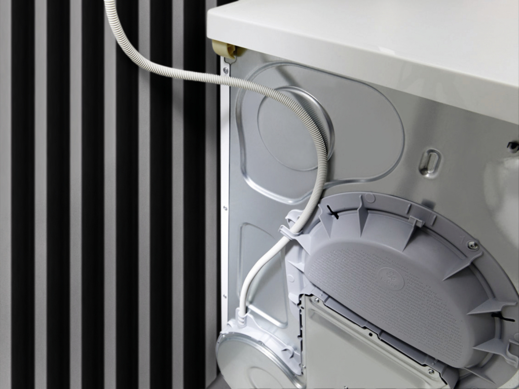 Всі сушильні машини Miele оснащені вбудованою системою відведення конденсату з механізмом намотування шланга. За допомогою цієї системи Ви можете зливати воду безпосередньо в раковину або в сифон - і у Вас більше не буде необхідності спорожняти ємність для конденсату.