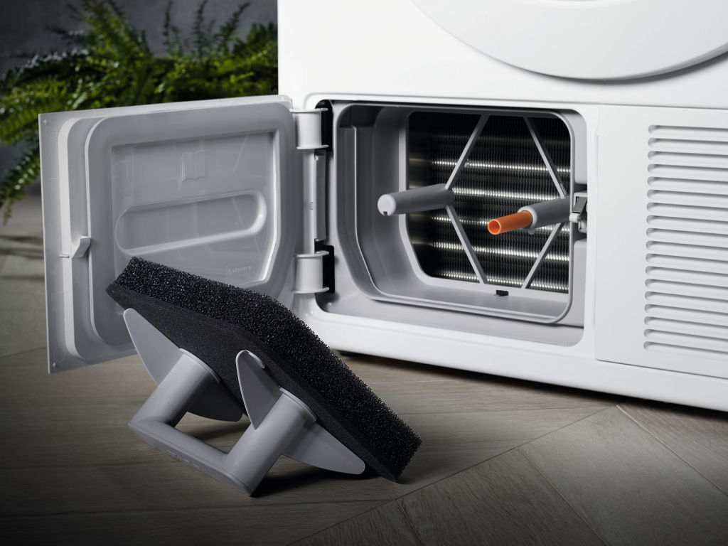 У сушильних машинах Miele з тепловим насосом теплообмінник захищений ефективною системою фільтрації та не потребує чищення. Це гарантує низький рівень енергоспоживання протягом усього циклу експлуатації приладу.